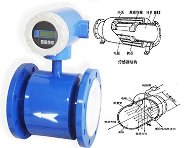 在結(jié)構(gòu)上,電磁流量計由電磁流量傳感器和轉(zhuǎn)換器兩部分組成。傳感器安裝在工業(yè)過程管道上,它的作用是將流進管道內(nèi)的液體體積流量值線性地變換成感生電勢信號,并通過傳輸線將此信號送到轉(zhuǎn)換器。轉(zhuǎn)換器安裝在離傳感器不太遠的地方,它將傳感器送來的流量信號進行放大,并轉(zhuǎn)換成流量信號成正比的標準電信號輸出,以進行顯示,累積和調(diào)節(jié)控制。
