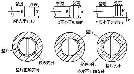 、 密封墊不能凸入管道內(nèi),其內(nèi)徑可比傳感器內(nèi)徑大1~2mm;