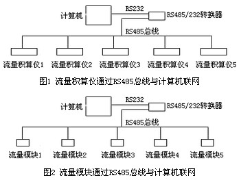 進入計算機,由計算機監(jiān)視和管理,這是流量計量的一個新的里程碑,它將大大提高流量計量的可靠性和計量精度。流量儀表網(wǎng)絡(luò)通訊有兩大發(fā)展趨勢,一種發(fā)展趨勢是近距離的網(wǎng)絡(luò)通訊,如一個大企業(yè)內(nèi)部流量儀表,可以通過 RS485 總線與計算機構(gòu)成網(wǎng)絡(luò),由計算機集中監(jiān)測和管理。如圖1、圖2。