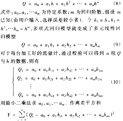 由于每臺(tái)流量計(jì)的錐管和浮子的加工誤差不可能一致,每臺(tái)金屬管轉(zhuǎn)子流量計(jì)的流量值p和浮子位移h的作線性關(guān)系也不可能一樣,所以在實(shí)際制造時(shí)流量計(jì)的凸輪都要逐臺(tái)校驗(yàn)加工,設(shè)口與h的非線性回歸模型為
