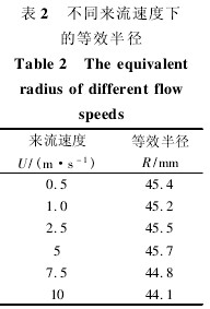 為了得到不同來流速度下的等效半徑,利用MATLAB 對各組數(shù)據(jù)進行相應(yīng)理論流速的插值運算,得到如表 2 所示的數(shù)據(jù)。